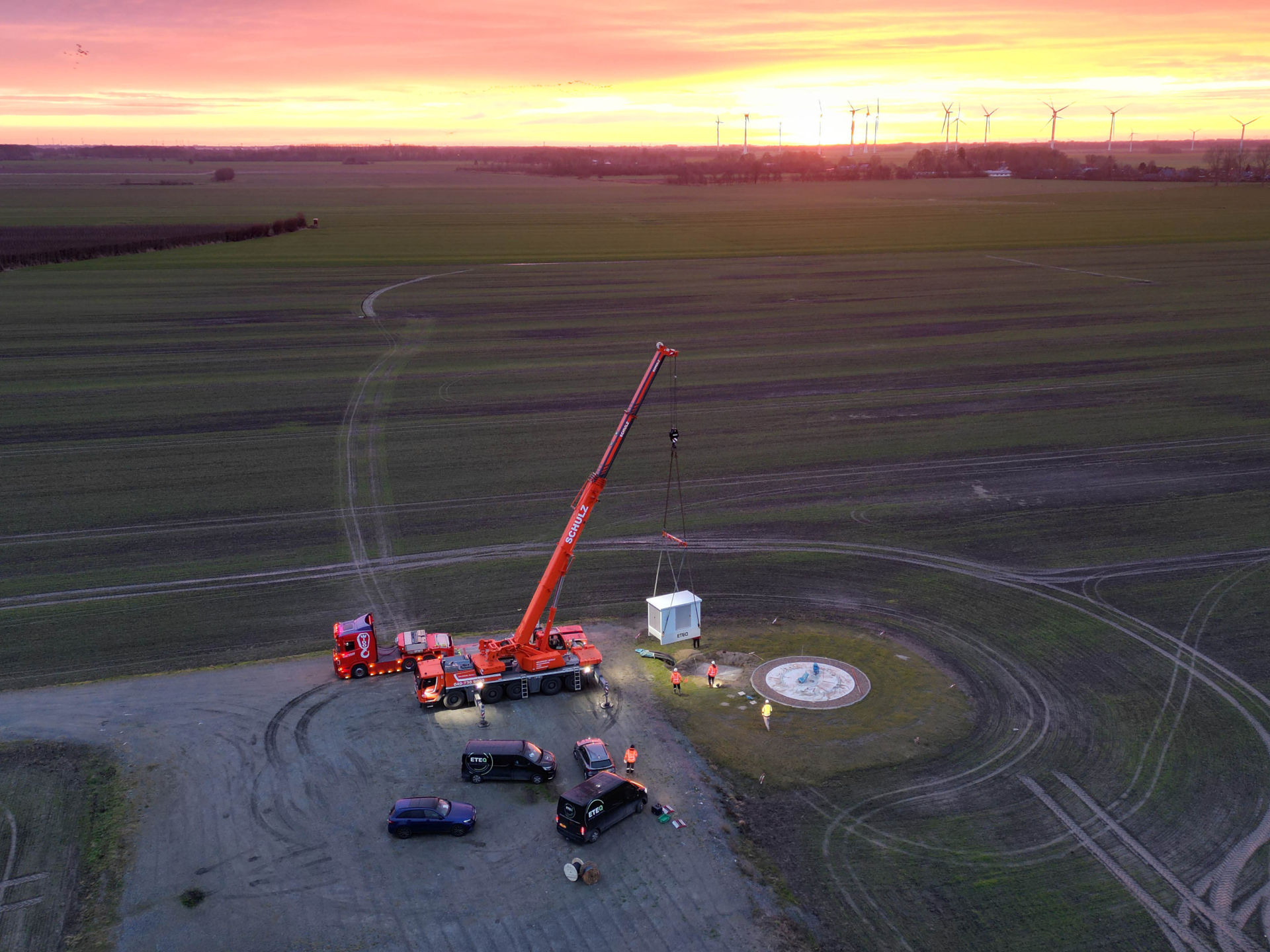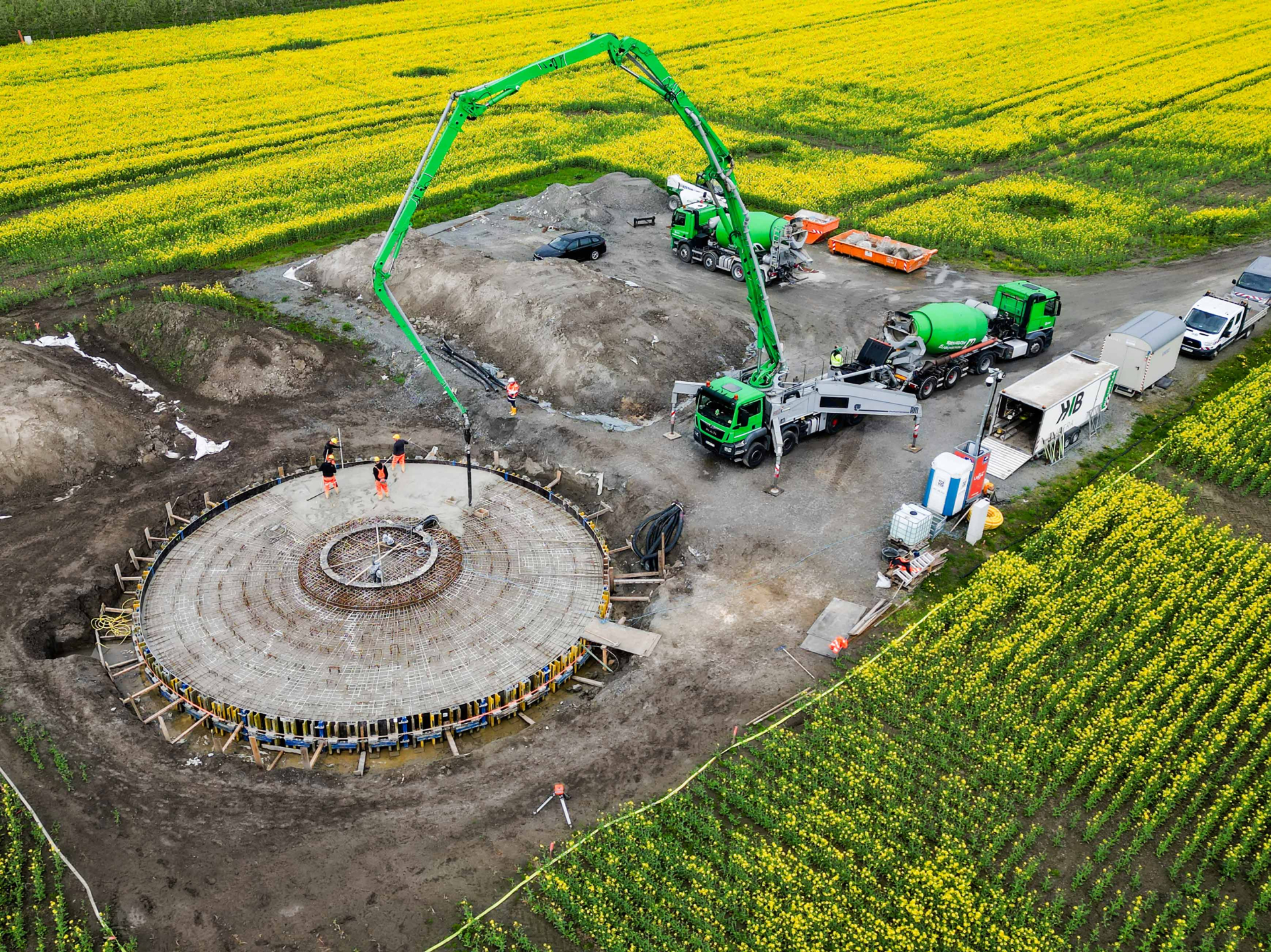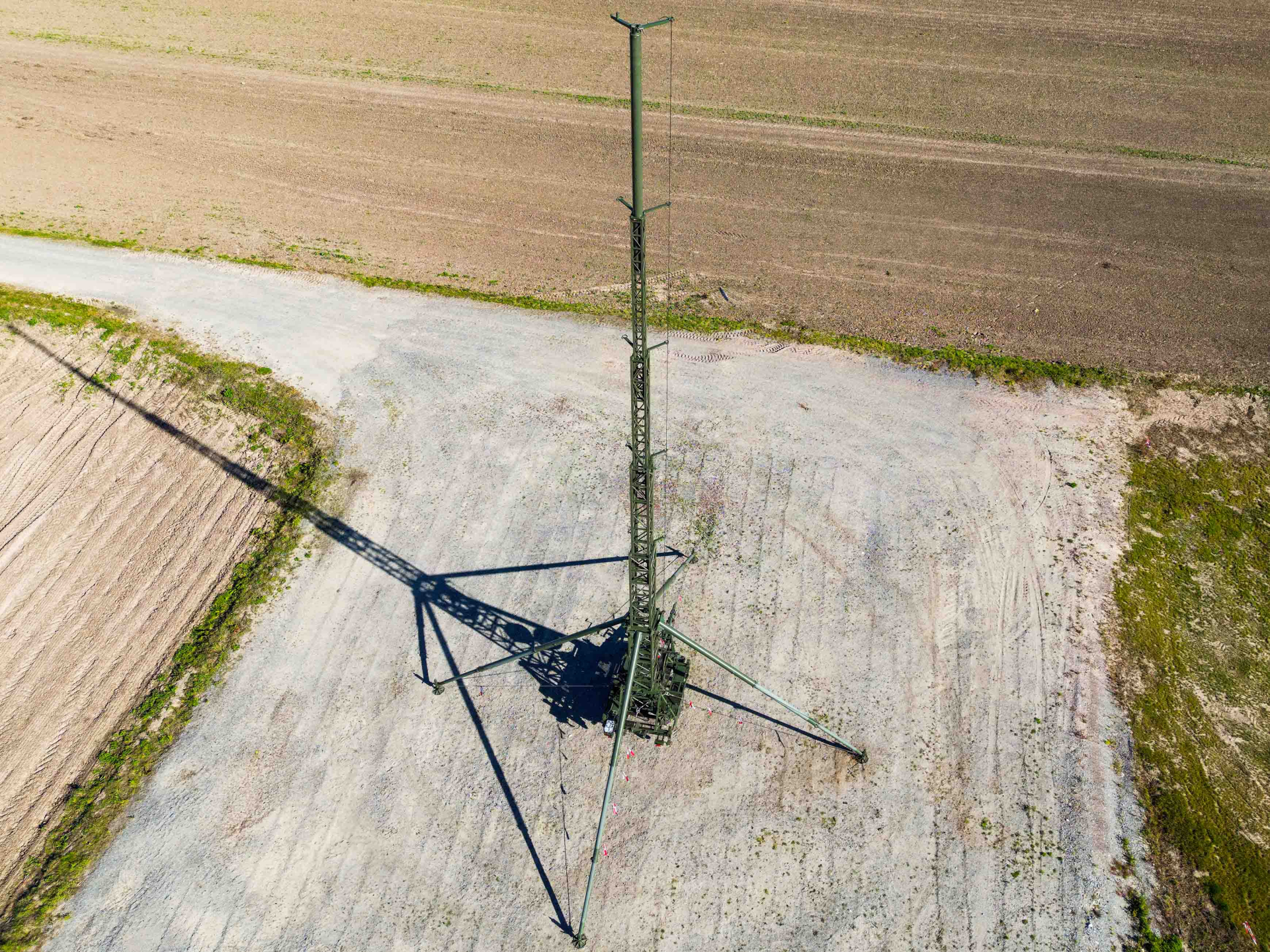 Der Aufbau unserer Experimentalturbine OPUS 3. Das ist nach OPUS 1 und OPUS 2, die bereits seit Sommer 2023 in Betrieb sind, die dritte Windenergieanlage des Forschungsparks. Das Fundament für OPUS 3 wurde im August 2025 fertiggestellt, auch der mobile Messmast ist bereits da. Insofern bin ich optimistisch, dass die Experimentalturbine bald errichtet und ans Netz gehen wird.