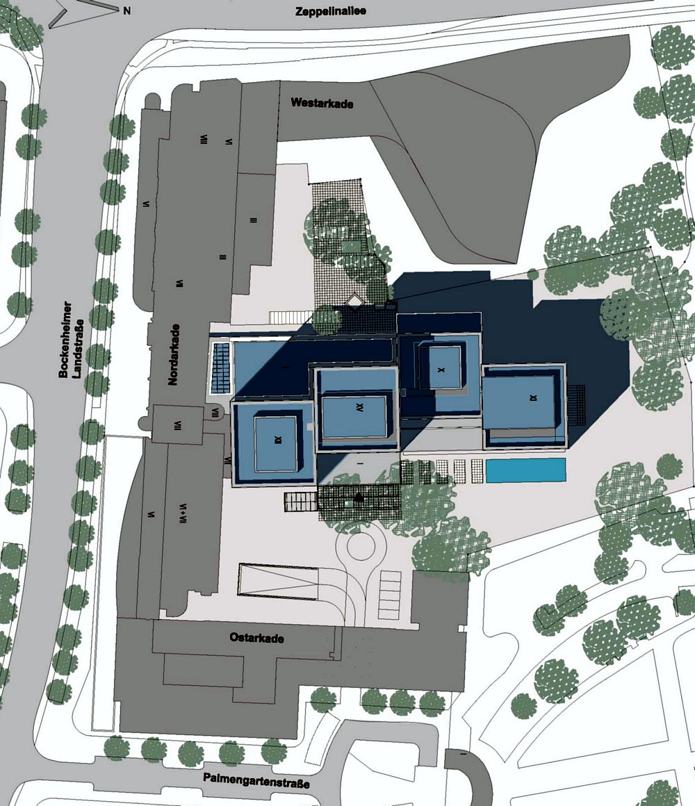 Für die notwendige Erweiterung des Gebäudekomplexes gab es am Standort nur sehr eingeschränkte Möglichkeiten. Auf der Westseite konnte eine Veranstaltungs- und Ausstellungshalle vorgelagert werden. Ein Turm erhielt eine Erweiterung um einen zweigeschossigen Konferenzraum. Der nördlich gelegene Turm wurde um drei Geschosse aufgestockt und beherbergt nun die Vorstandsetagen. Im Erdgeschoss wurde ein repräsentativer Eingangsbereich zum Innenhof hin angebaut.