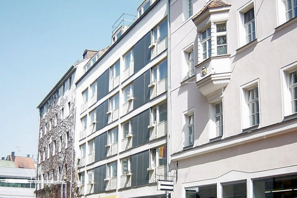 The “Hotel am Viktualienmarkt” owes its name to the flower market, founded in 1843, which used to be held in the neighbouring Schrannenhalle. The operator of the Derag Livinghotels hotel chain wanted to completely renovate the somewhat dilapidated residential home in the Utzschneiderstrasse, modernise it and adapt it to become a luxury hotel. Special attention was given to the problem of legionella in the domestic hot water. Normally – and especially in hotels with an often very sporadic hot water requirement – this problem is countered with high hot water supply temperatures or decentralised boilers, both of which are energy-intensive. In this project, however, it was intended to develop a new energy-efficient approach: in every hotel room a decentralised technology station based on a very small, micro-heat pump provides space heating, hot water, cooling and hygiene ventilation. Via a so-called neutral feed, all rooms are linked at a comparatively low temperature level and are also connected to the central hot water and cold water storage system. Owing to the considerable complexity of the overall system and the necessary control technology it was decided that the systems should undergo scientific evaluation.